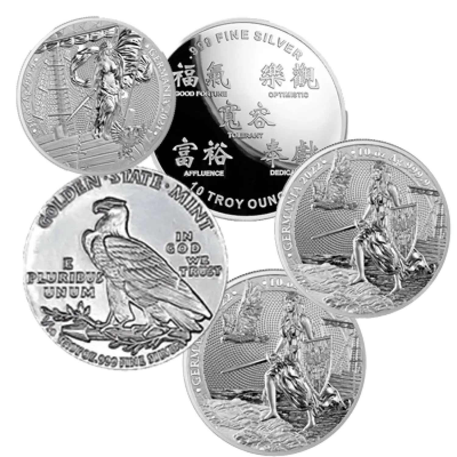 The most popular sizes when you buy silver are 1oz, 10oz, and 100oz. Many other sizes exist, but those silver bar or silver round sizes are not as popular. Generic Silver Rounds are perfect for investors who are looking to expand their precious metals portfolio economically. Each 10 oz Generic Silver Round is composed of 10 troy ounces of .999 fine silver.