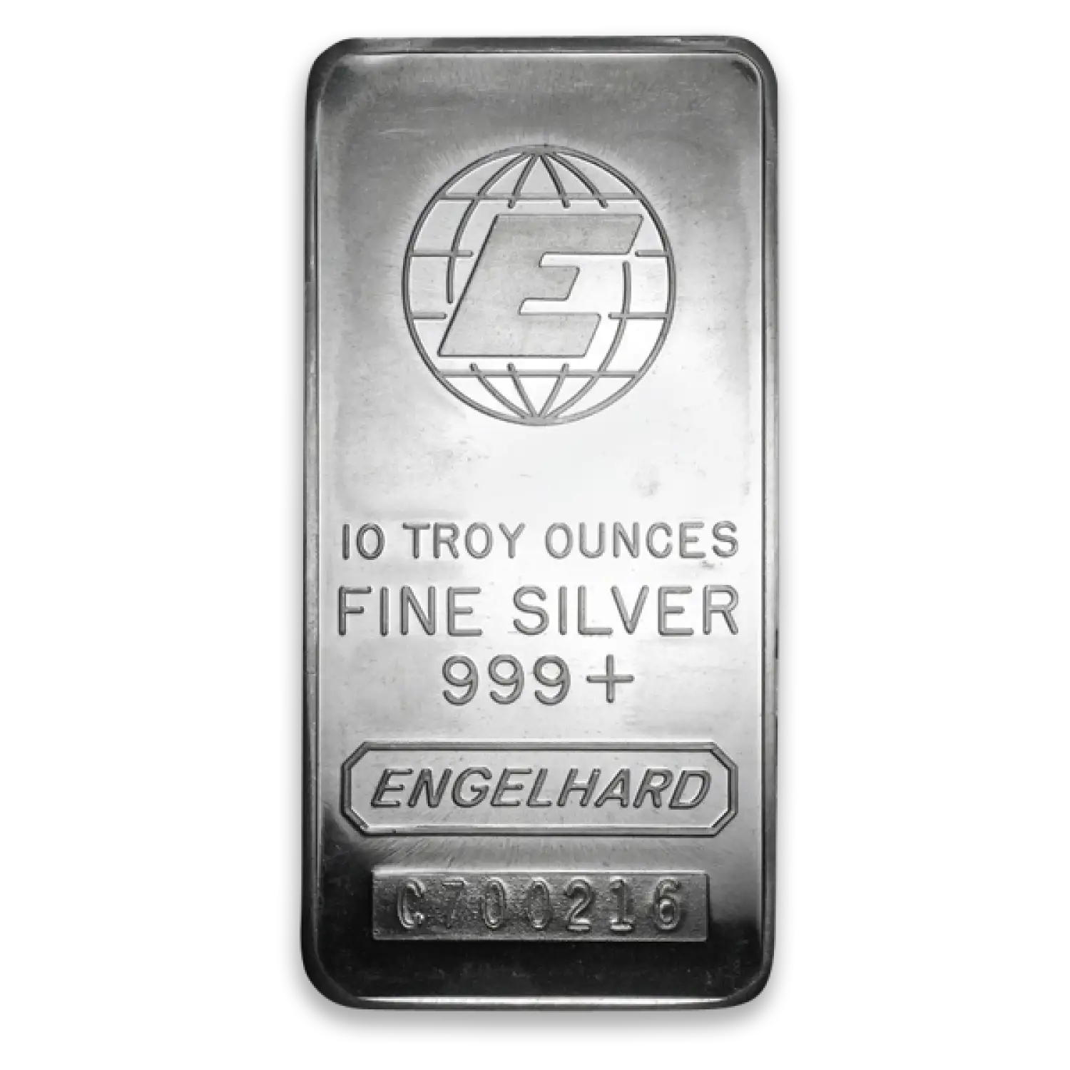 Engelhard is one of the most iconic and prestigious names in the silver bullion industry. Engelhard Silver Bars are highly sought after by collectors and investors who admire the Engelhard brand. Each 10oz Engelhard Silver Bar is composed of 10 troy ounces of .999 fine Silver and is approved for Precious Metals IRAs.