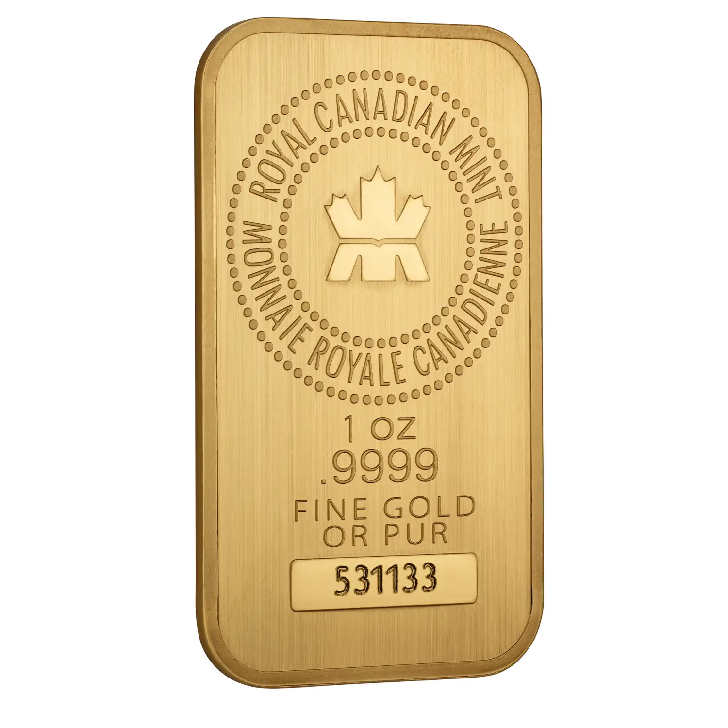 Minted by the Royal Canadian Mint, Royal Canadian Mint 1 oz Gold Bar highly respected and recognized gold bullion bar globally and contains 1 Troy Ounce of .9999 fine gold. This bar offers superior security features. 1 oz Royal Canadian Mint Gold Bars are known for their products’ quality feel and finish and their beautiful designs. Made with world-class minting technology, these bars offer excellent investment value and are a great addition to your portfolio.
