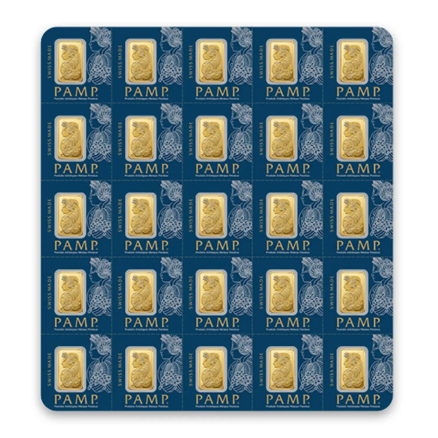 Each 1g x 25 PAMP Multigram is composed of 25 1 gram bars of .9999 actual gold.