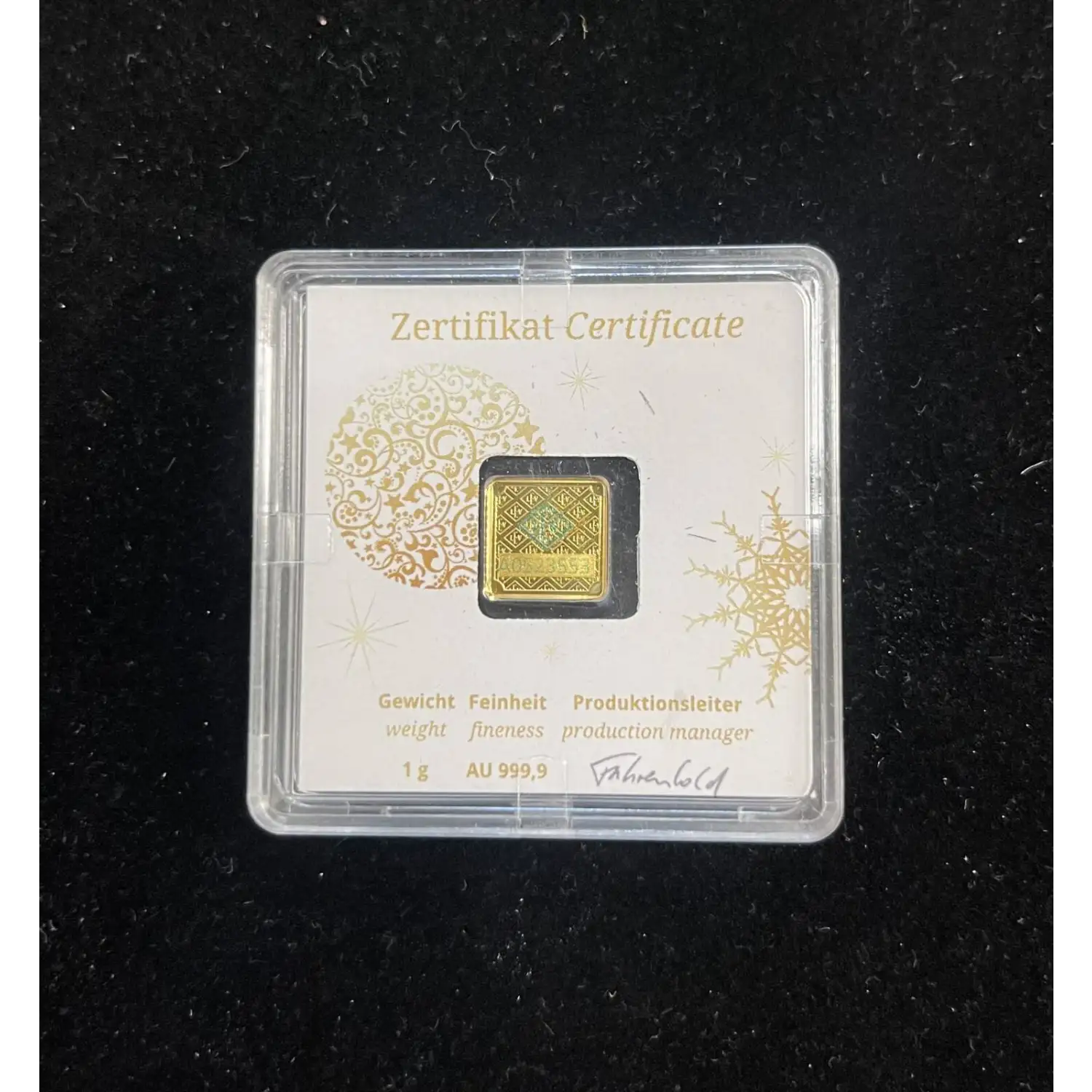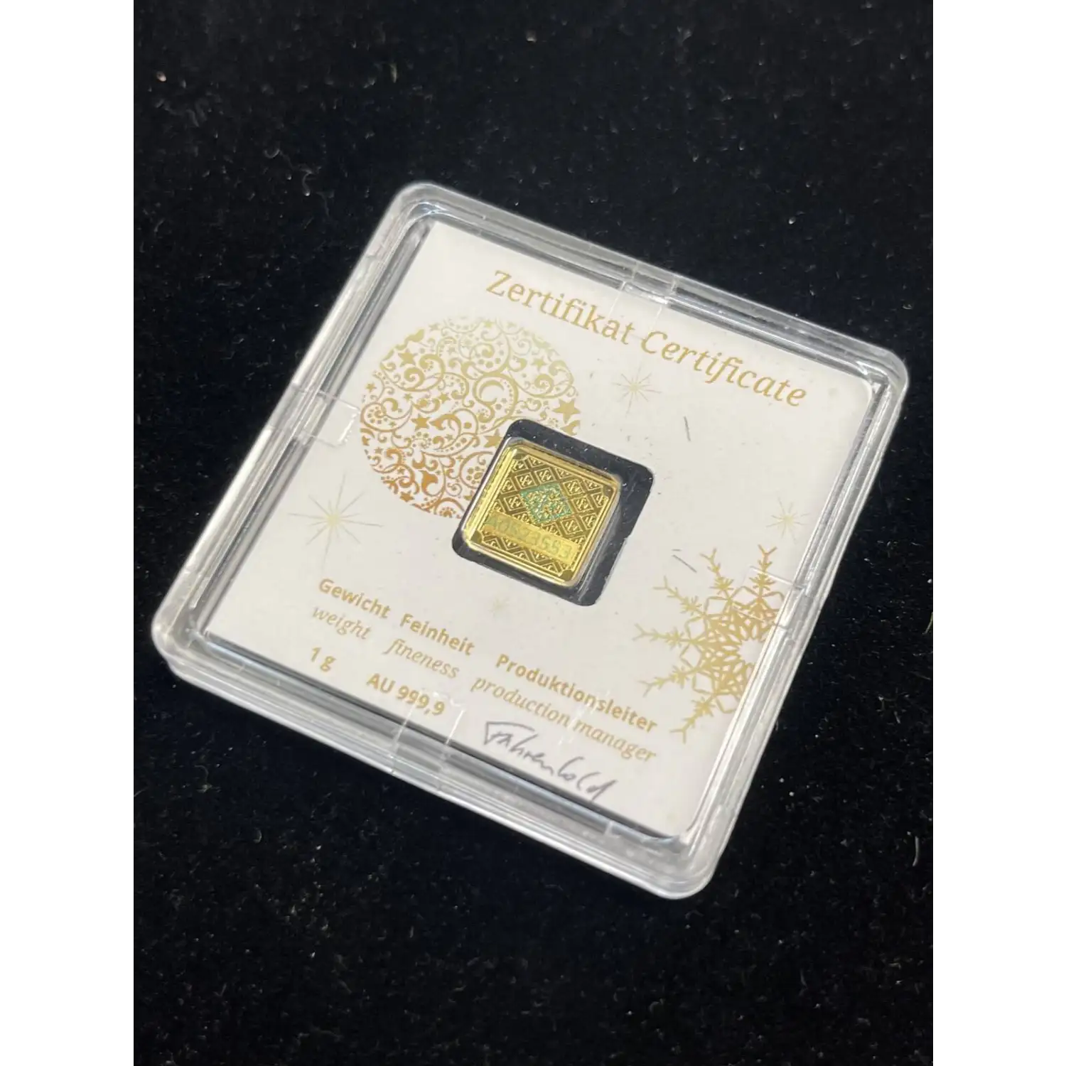 1g 999.9 Fine Gold Geiger Edelmetalle Premium in Plastic Assay Case.