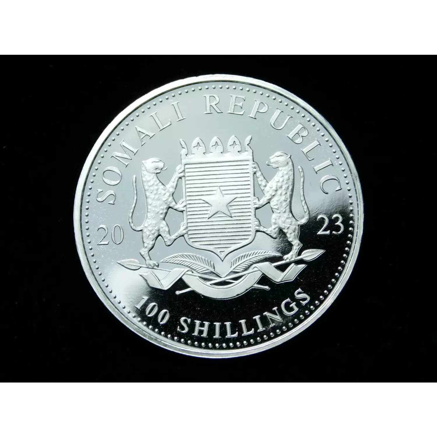 2023 1 oz African Wildlife Somalia Silver Elephant Coin - Gem Uncirculated Condition