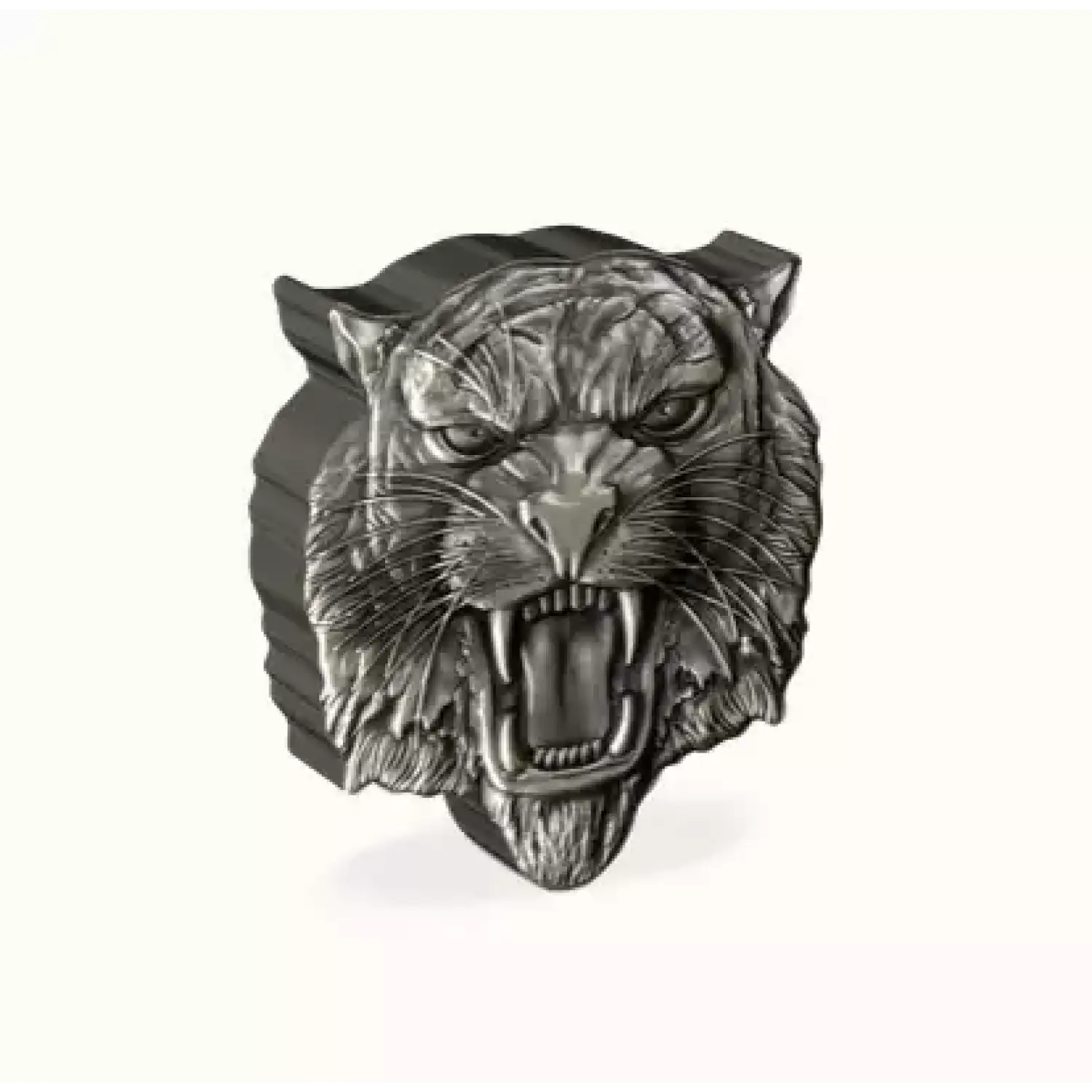 Shaped and struck from 2oz of pure silver, this exquisite coin displays a grizzly bear's head, sporting a menacing roar to highlight the animal’s strength and ferocity. The intricate detailing of the bear’s facial features and fur wonderfully captures the animal’s unique beauty. To make it even more impressive, a stunning antique finish has been applied.