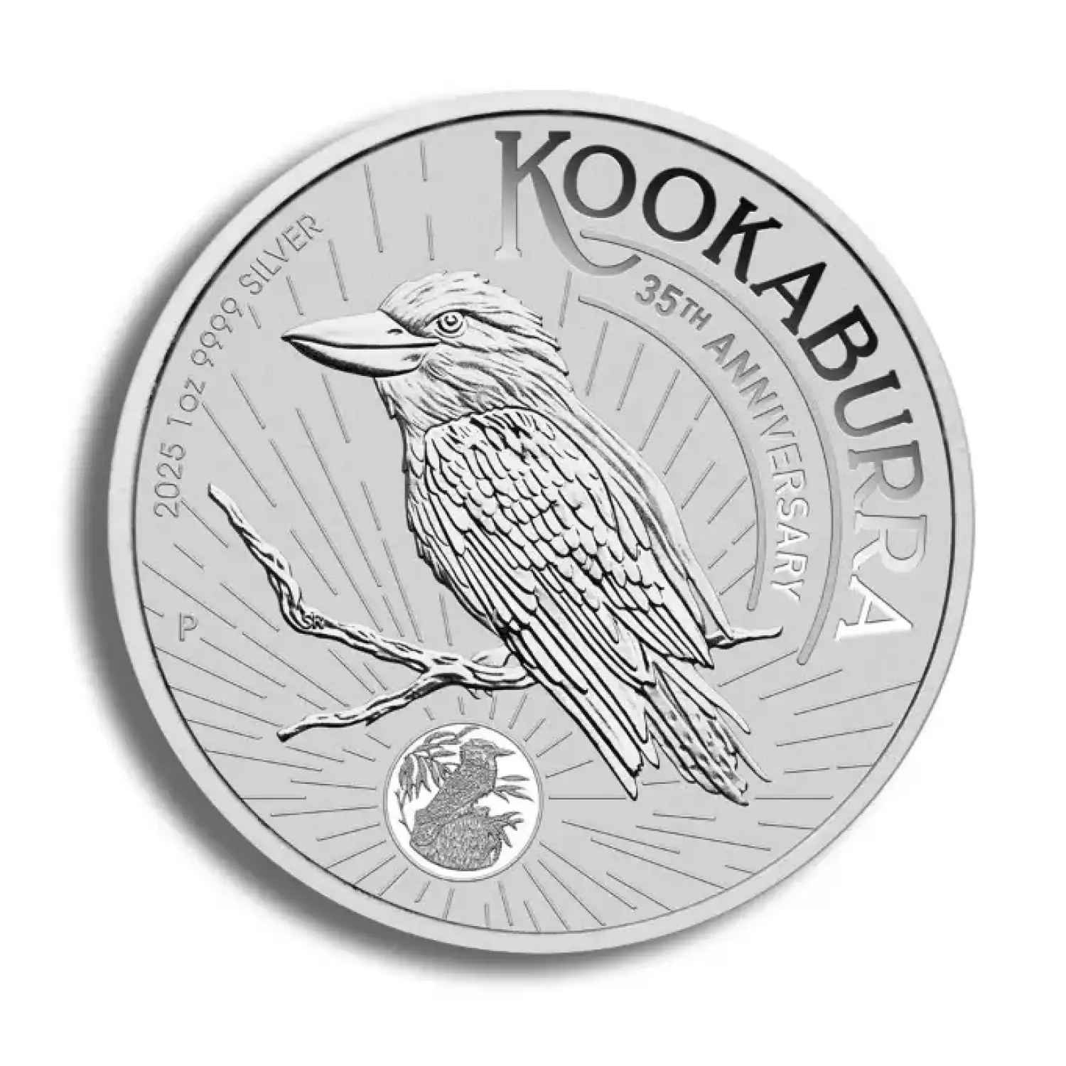 The 2025 1 oz Australian Perth Mint Silver Kookaburra features iconic Kookaburra. First released in 1990, each silver coin weighs 1 troy ounce and 0.999 fine silver.