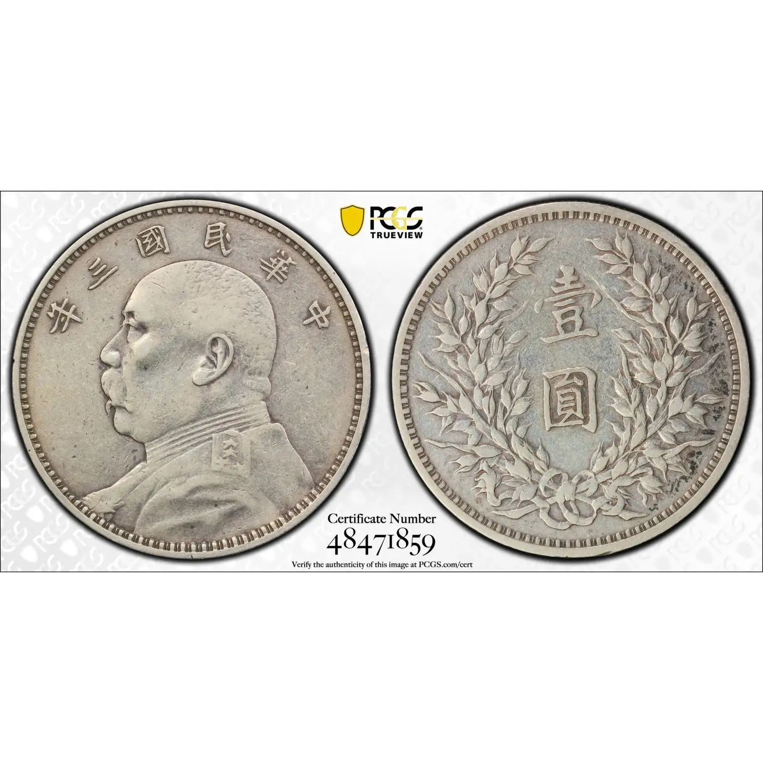 1914 $1 China “Fat Man” Yuan Shikai Silver Dollar – PCGS VF35