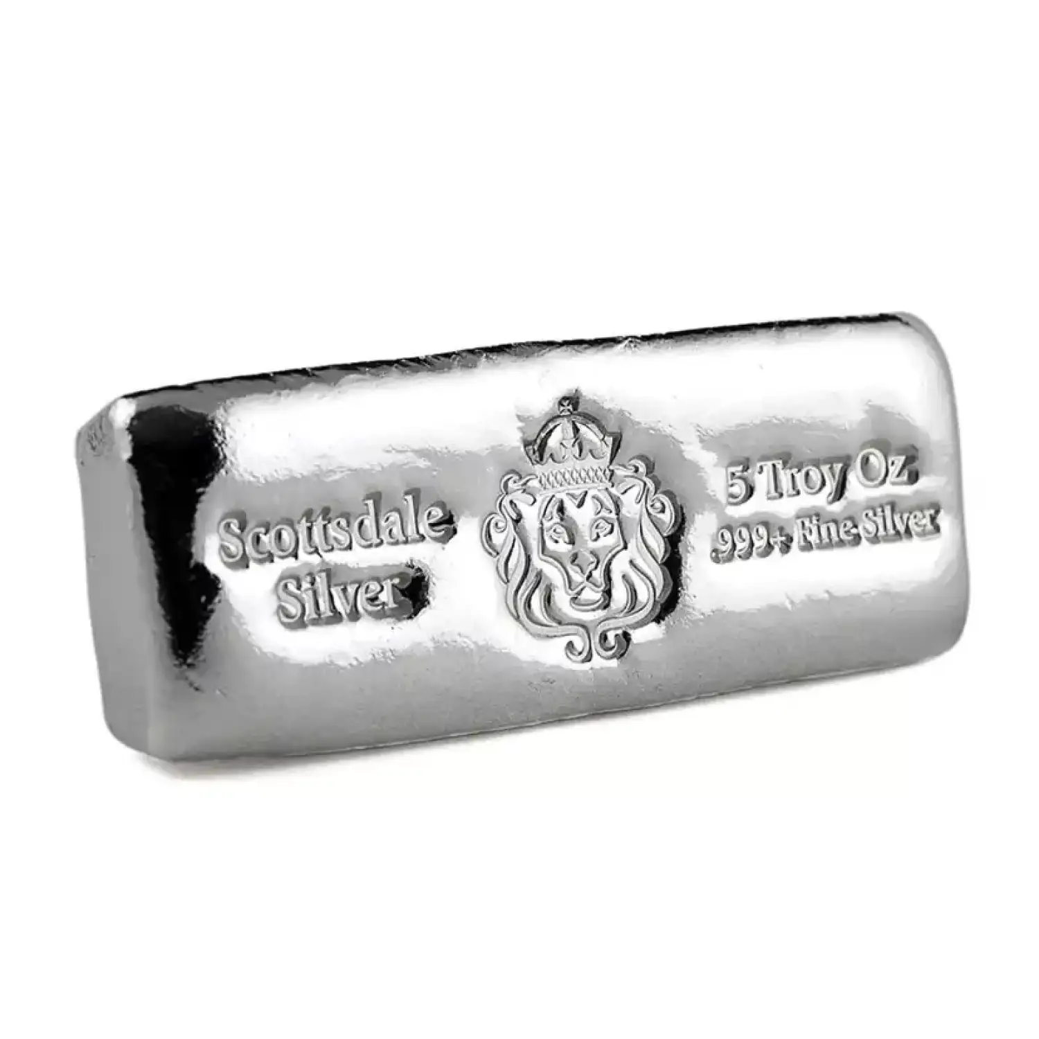 Whether you're diversifying your portfolio or adding personality to your stack, the Scottsdale 5 oz Poured Silver Bar delivers both substance and style.