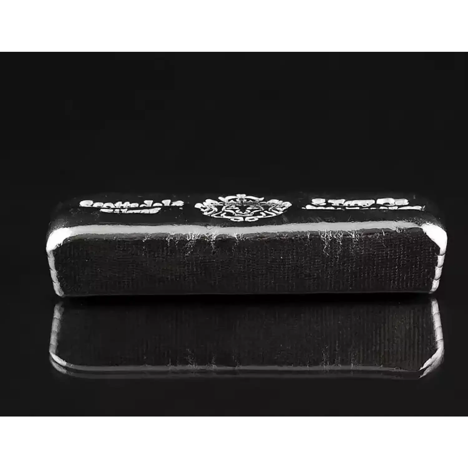 Add weight and character to your stack with the rugged beauty of the 10oz Poured Silver Bar from Scottsdale Mint. Hand-poured and stamped with the iconic crowned lion logo, this bar combines traditional craftsmanship with the quality and trust investors expect from one of America's premier private mints.
