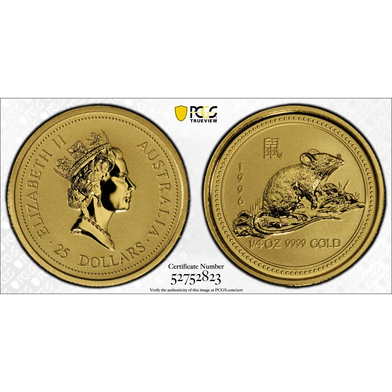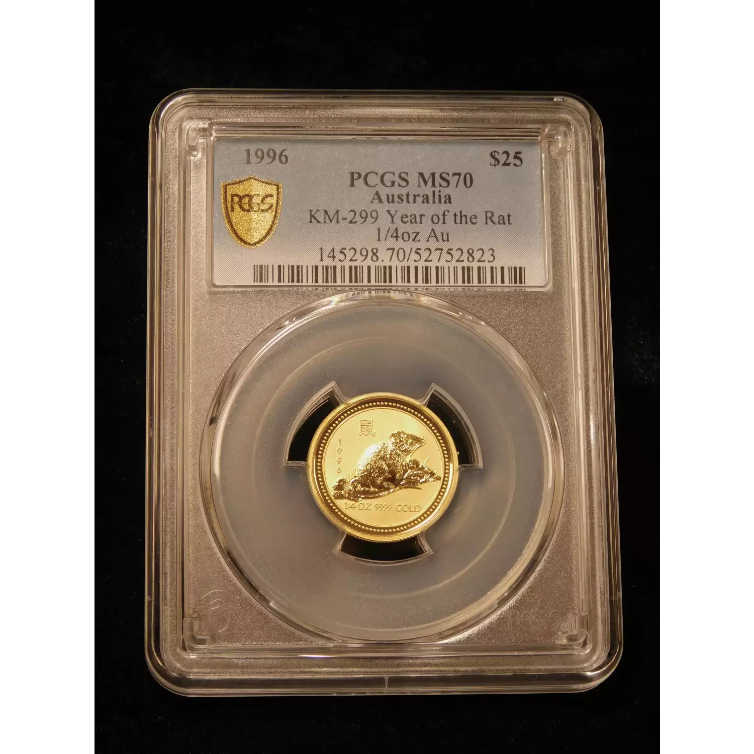 This 1996 $25 Year of the Rat gold coin marks the very first issue in Australia’s original Lunar Series, making it a foundational piece for collectors of Perth Mint lunar gold. Struck in 1/4 oz of .9999 fine gold and graded a perfect MS70 by PCGS, this coin offers both numismatic significance and pristine condition.