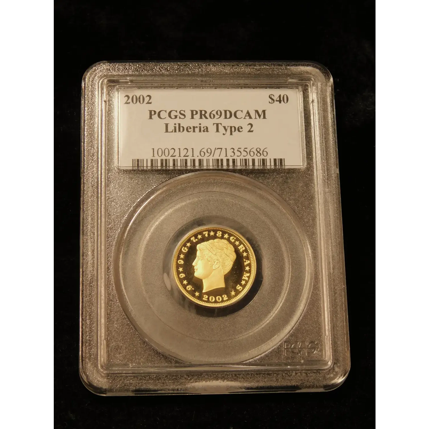 2002 $40 Liberia “Coiled Hair Stella” 1/4 oz Gold – PCGS PR69DCAM Type 2