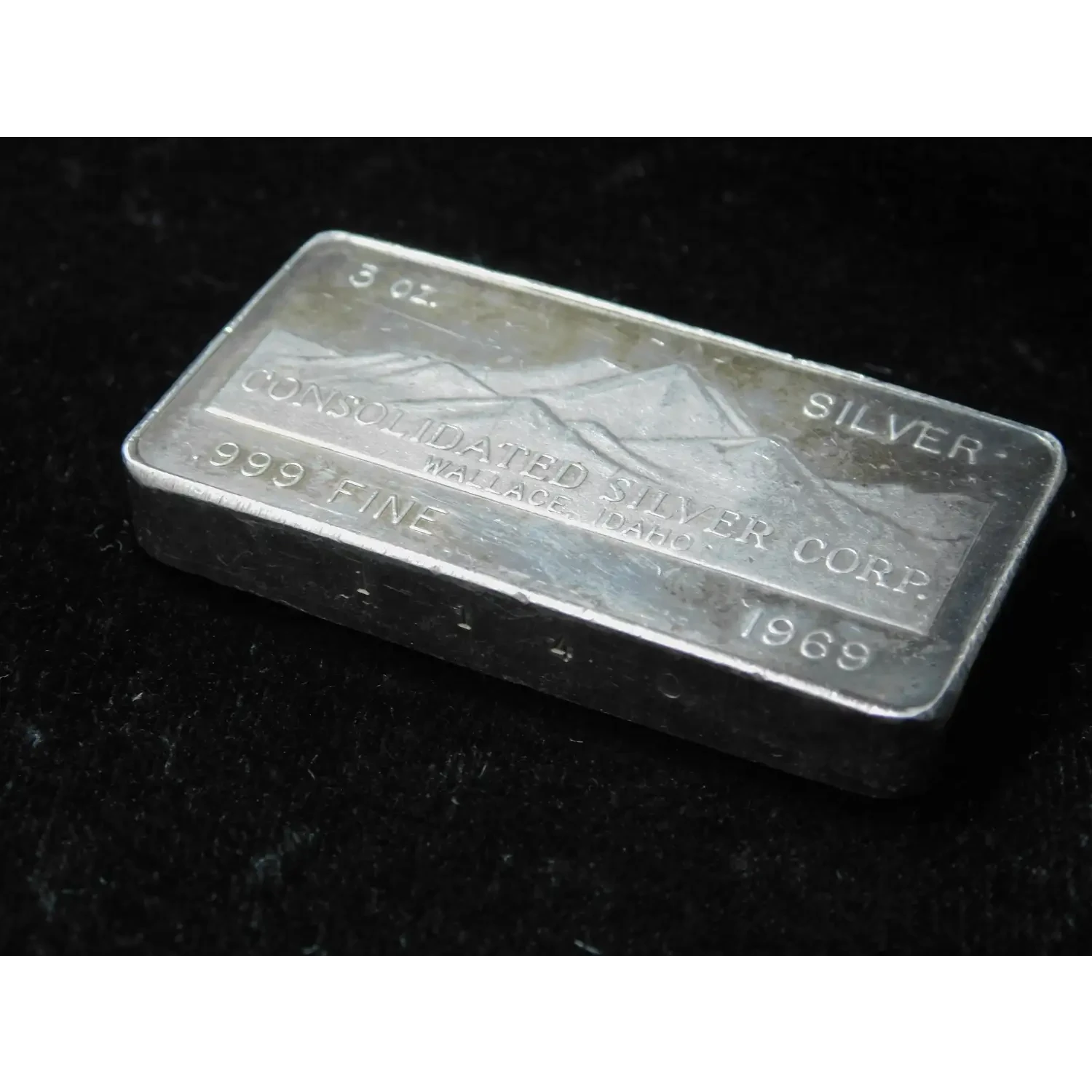 1969 Consolidated Silver Corp 3 oz .999 Silver Bar Walla Walla Washington