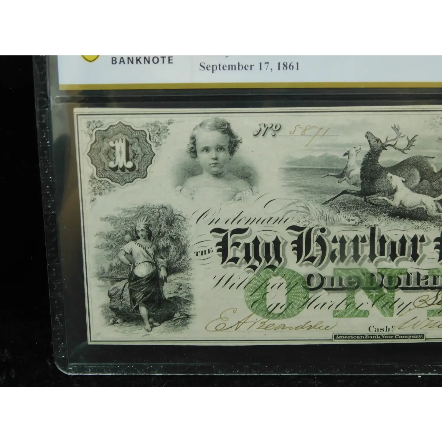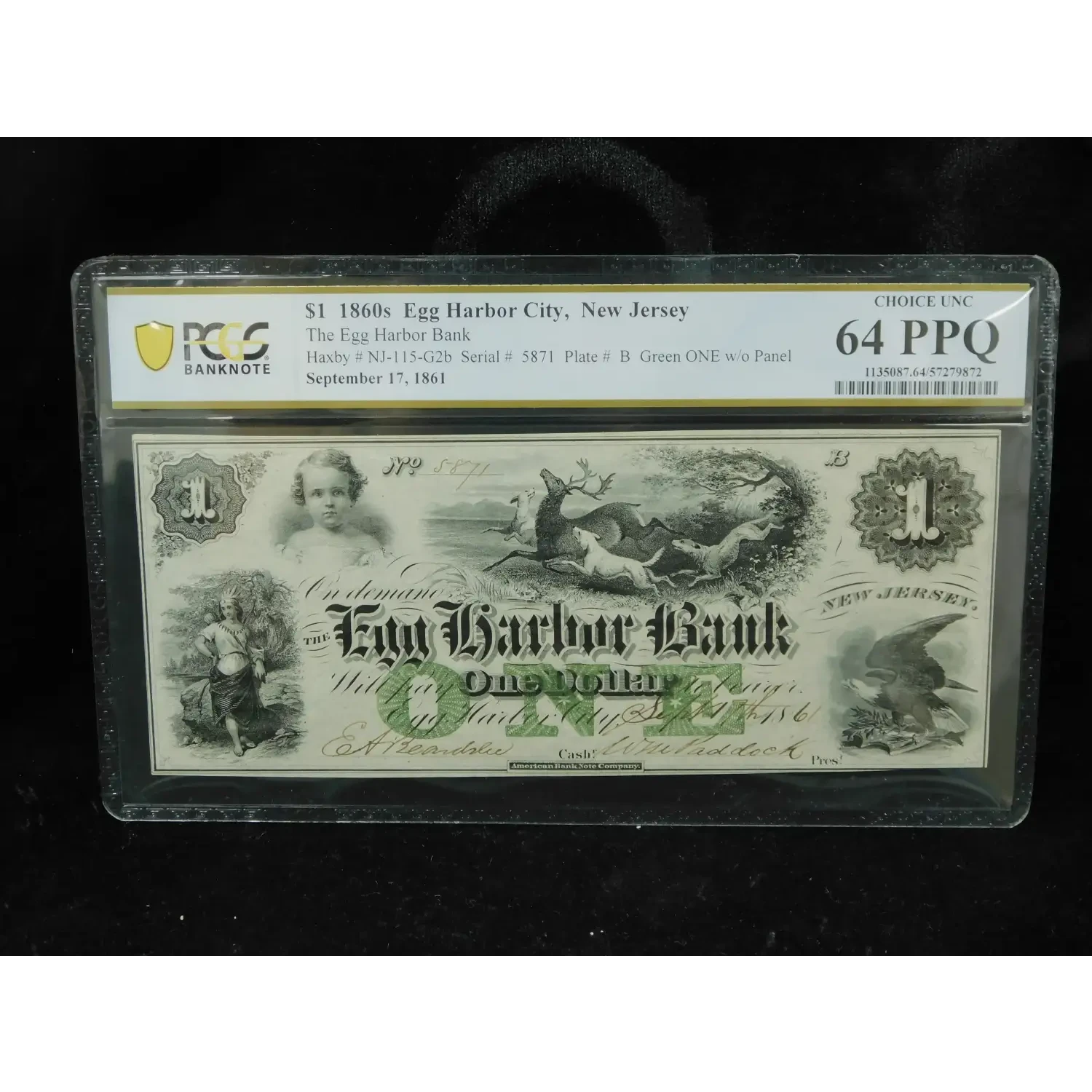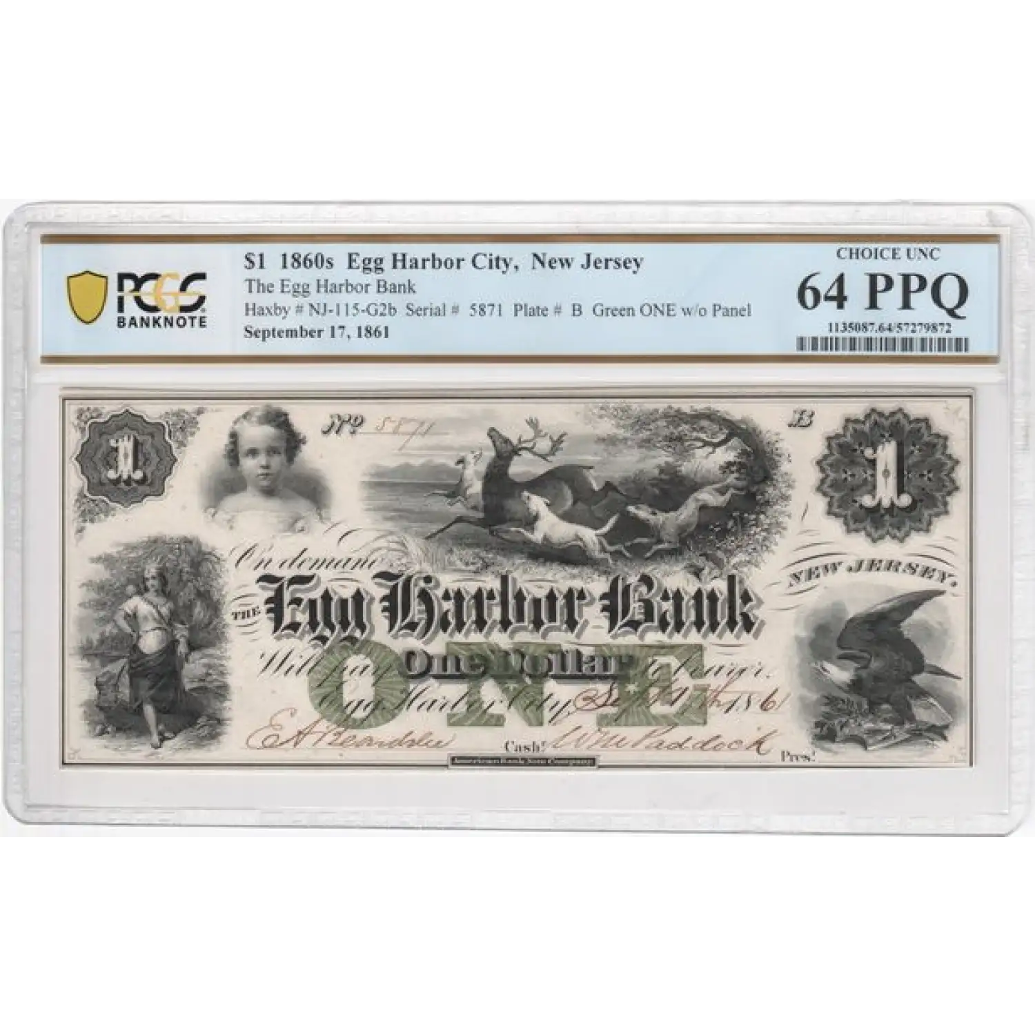 1861 $1 Egg Harbor Bank New Jersey Obsolete Paper Currency Green One - PCGS 64 PPQ