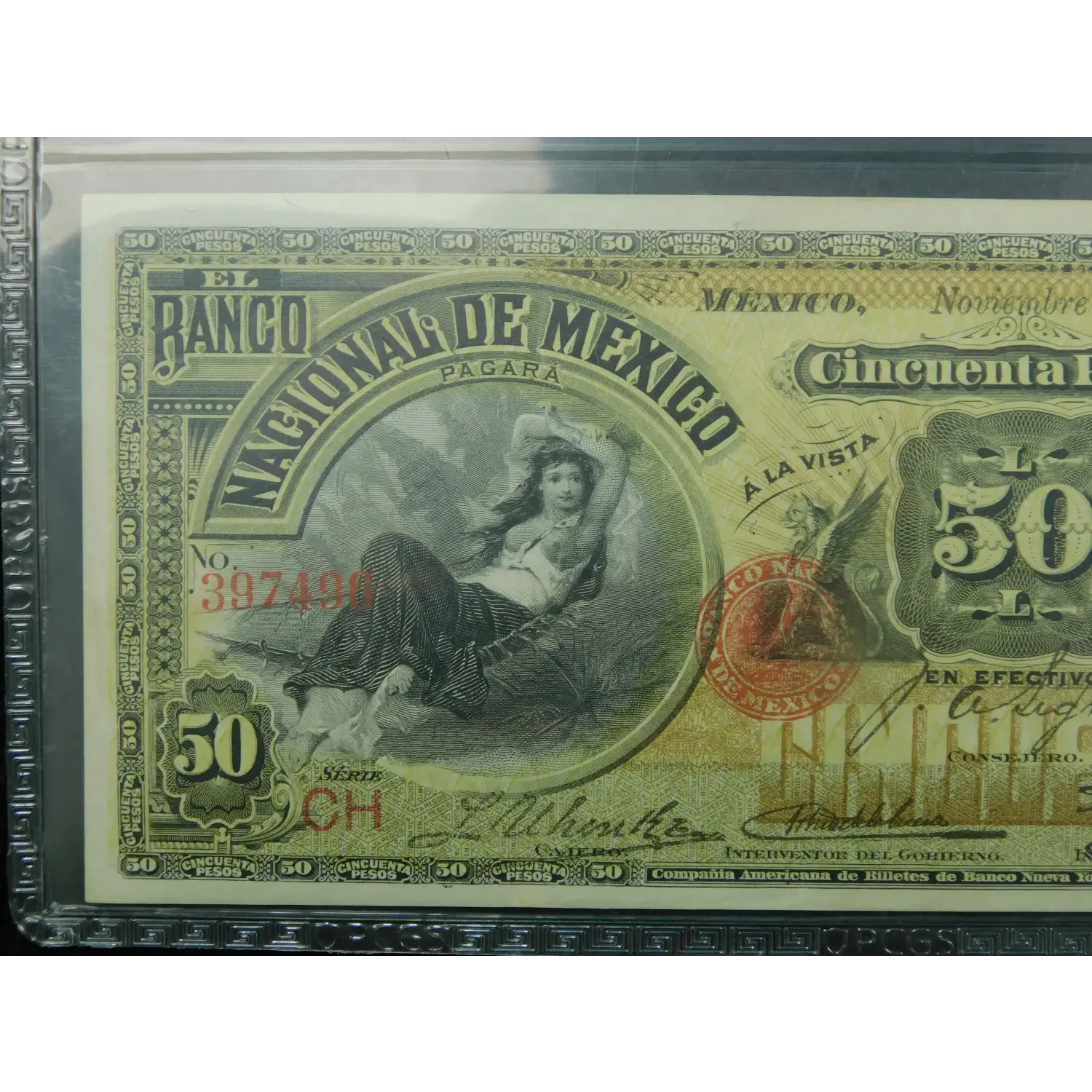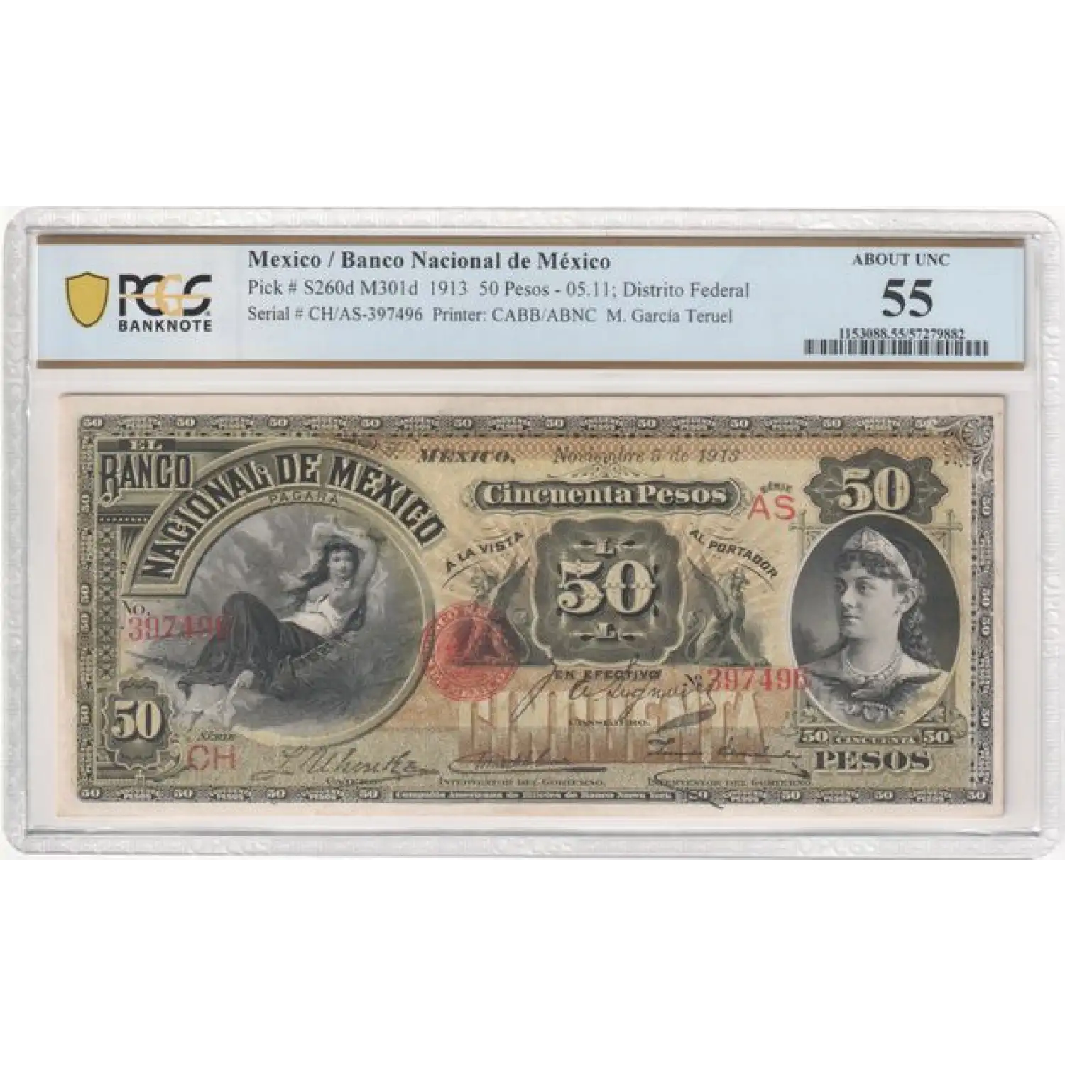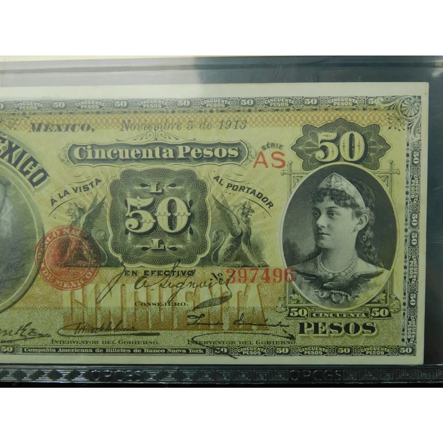 1913 Mexico 50 Pesos Paper Currency - S260d M301d- PCGS AU55