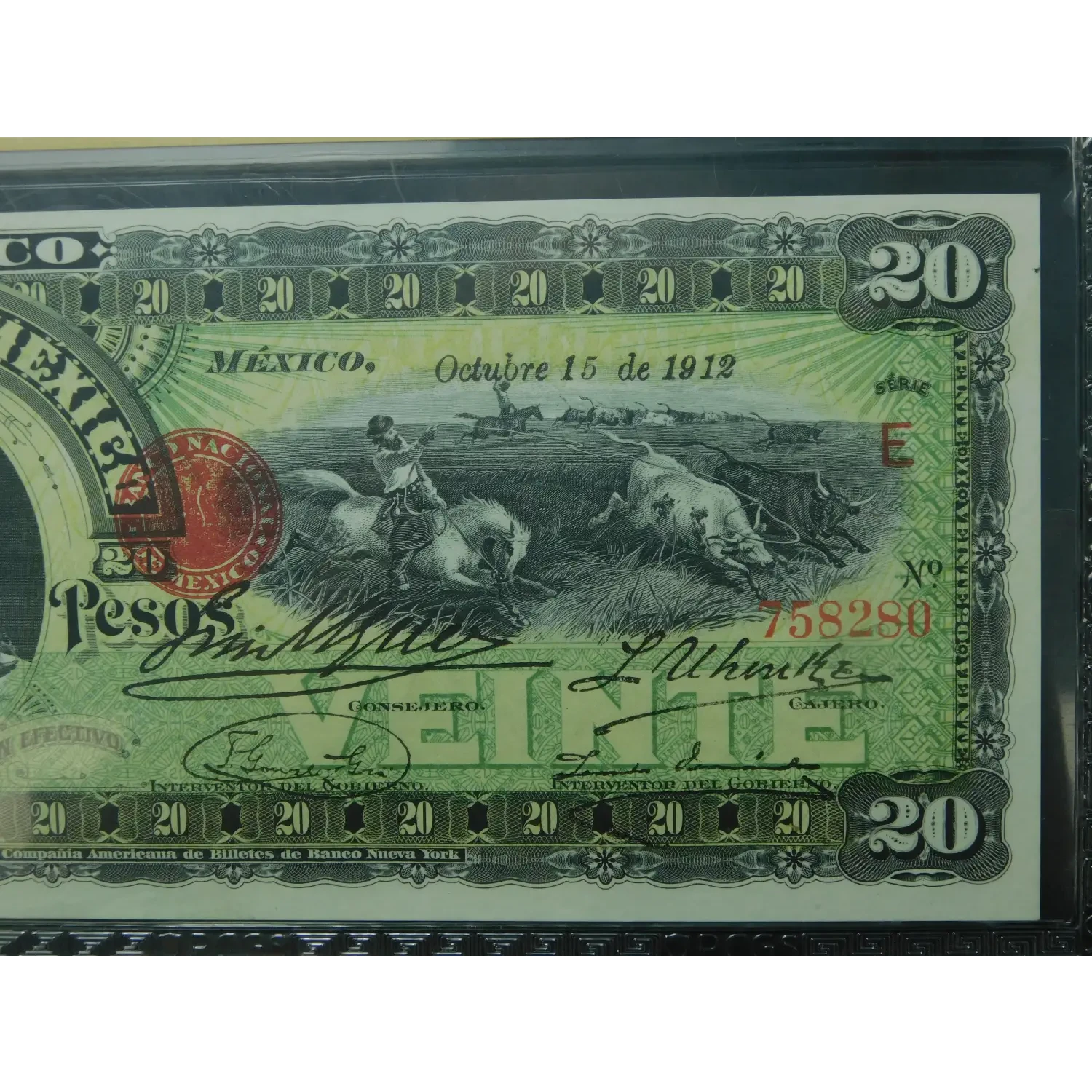 1912 Mexico 20 Pesos Paper Currency - S259d M300d - PCGS AU58