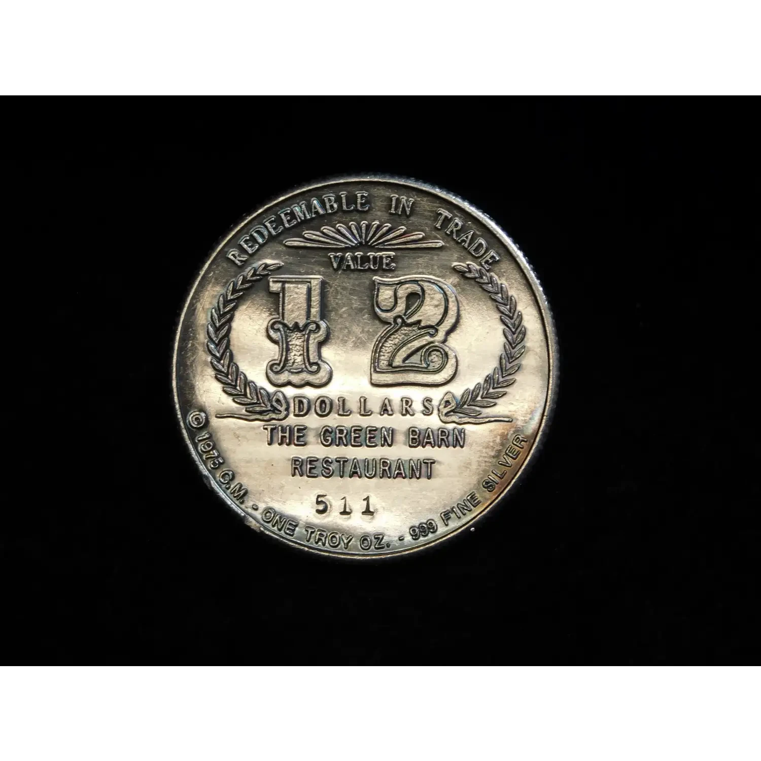 | Year | Vintage 1975 C.M. The Green Barn 1 oz .999 Fine Silver Round |