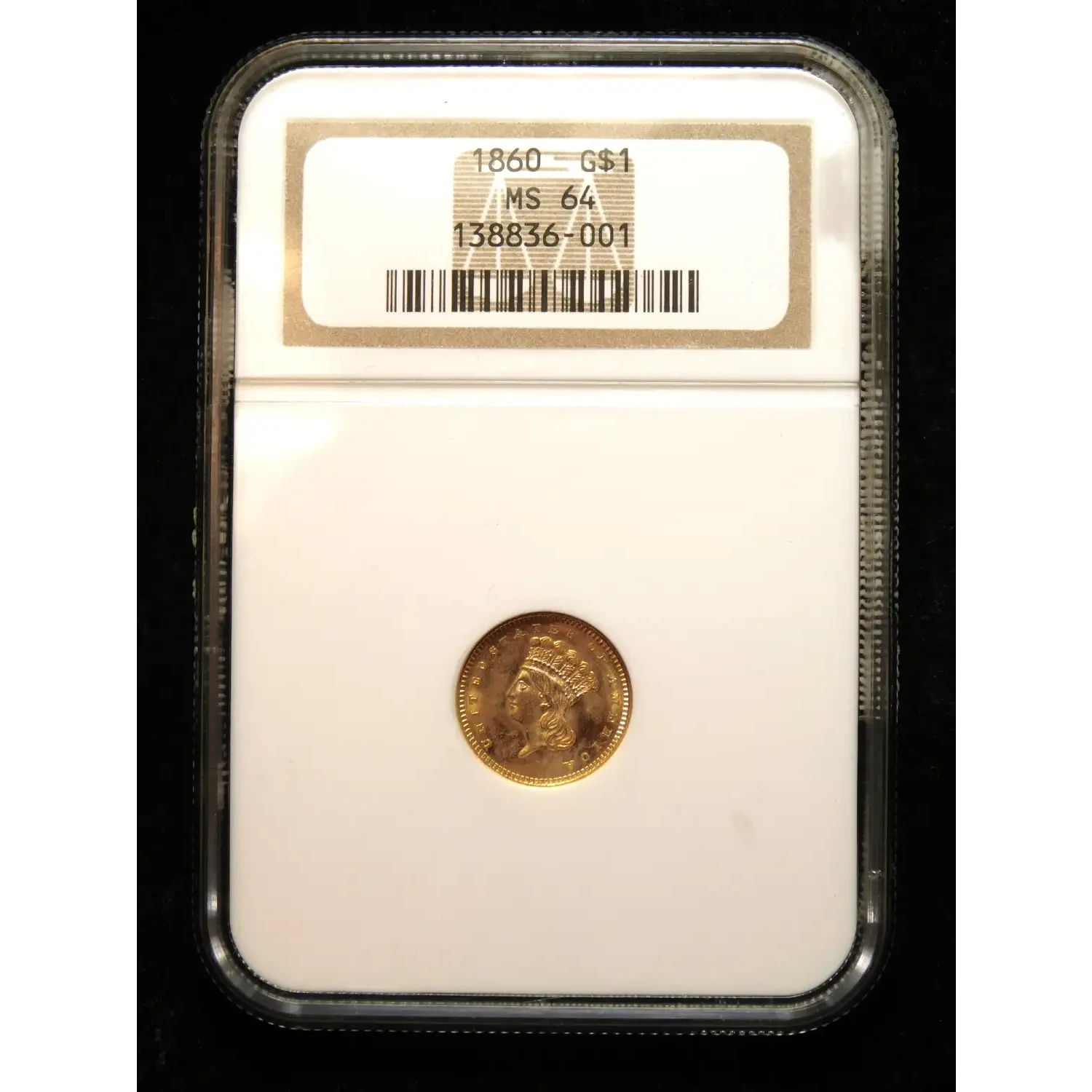 1860 $1 Princess Head Gold Dollar - NGC MS64 Brown Label