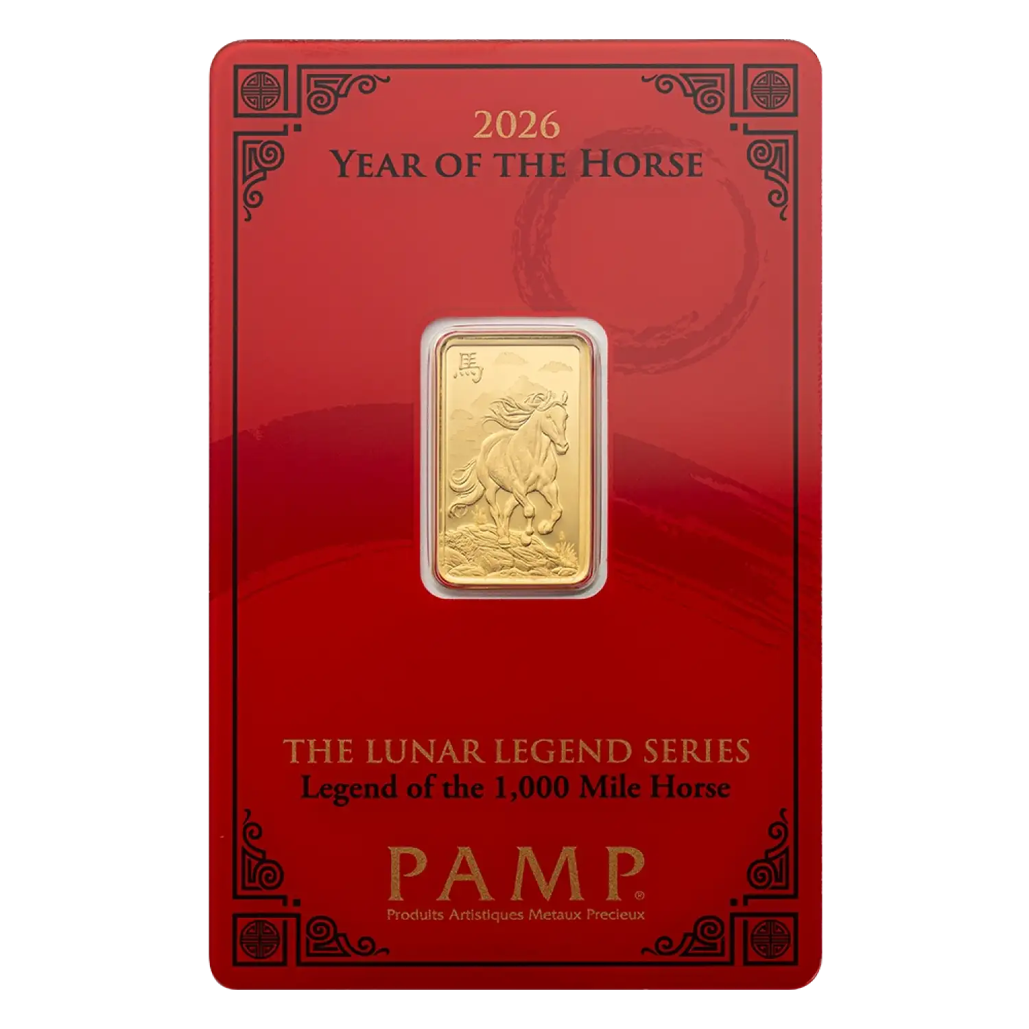 Whether you are drawn by the artistic representation of the horse or the intrinsic value of gold, the 2026 5g PAMP Gold Year of the Horse is a remarkable addition to any collection. This piece transcends mere bullion; it is a celebration of cultural heritage, superb craftsmanship, and timeless value. Enhance your investment journey today with this stunning gold bar, and let it inspire success and prosperity for years to come.