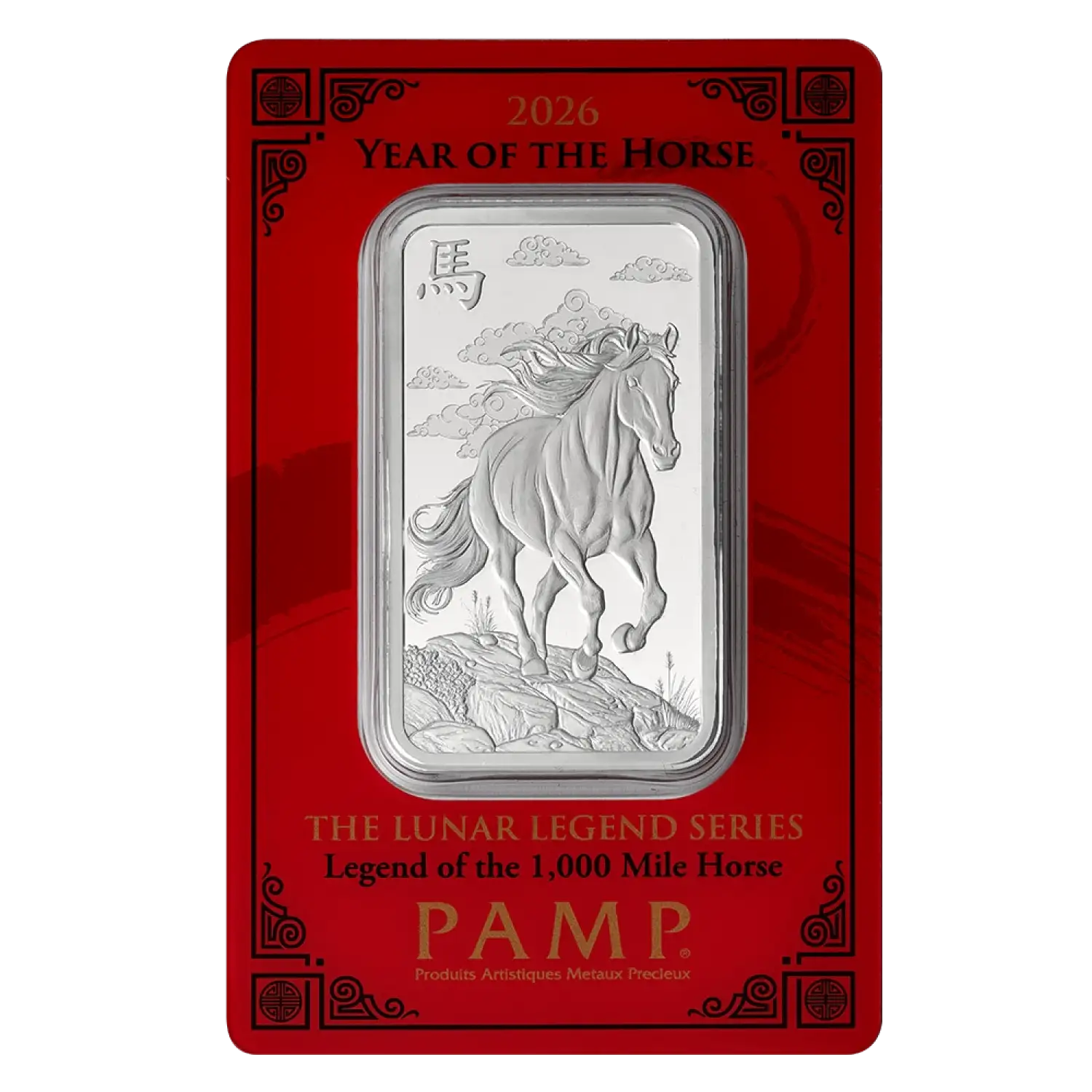 The 1oz PAMP Silver Bar - Legend - Year of the Horse not only provides a valuable addition to your physical assets but also carries with it a cultural narrative that is sure to inspire and engage. As demand for silver bullion continues to grow among both investors and collectors, this piece enhances its appeal with its striking design and reliable purity, making it a must-have for anyone serious about silver investments.