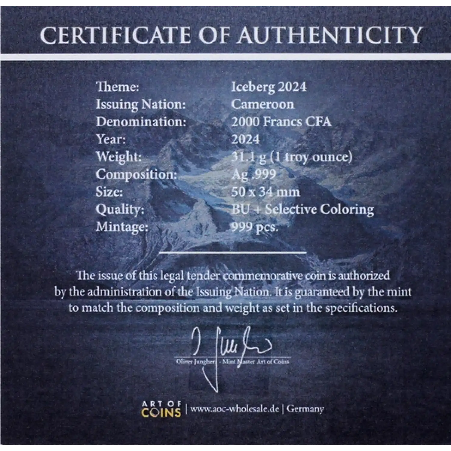 | Year | 2024 Wonders of Nature Iceberg 1 oz Silver Coin |