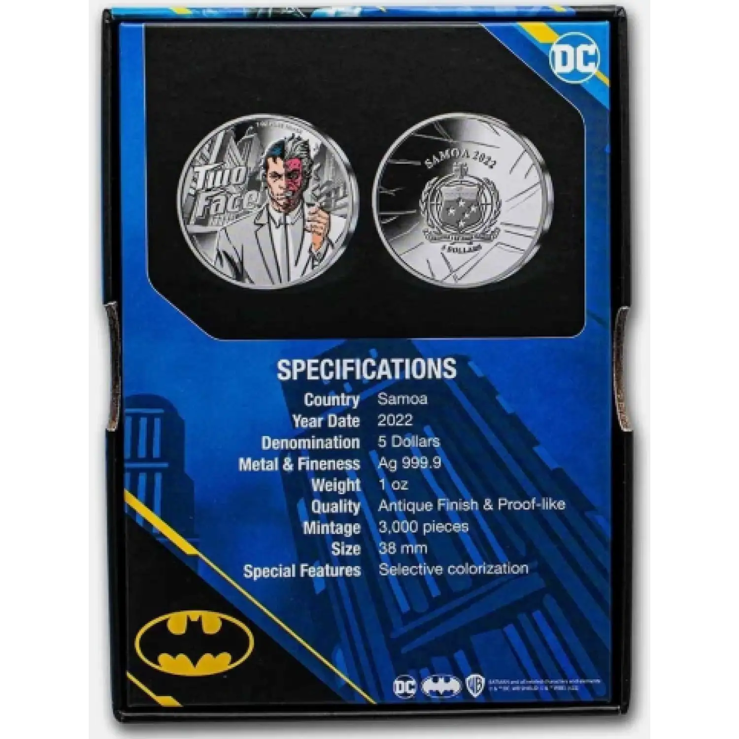2022 Samoa $5 DC Two Face Supervillain Edition Colorized Proof-Like Silver Coin