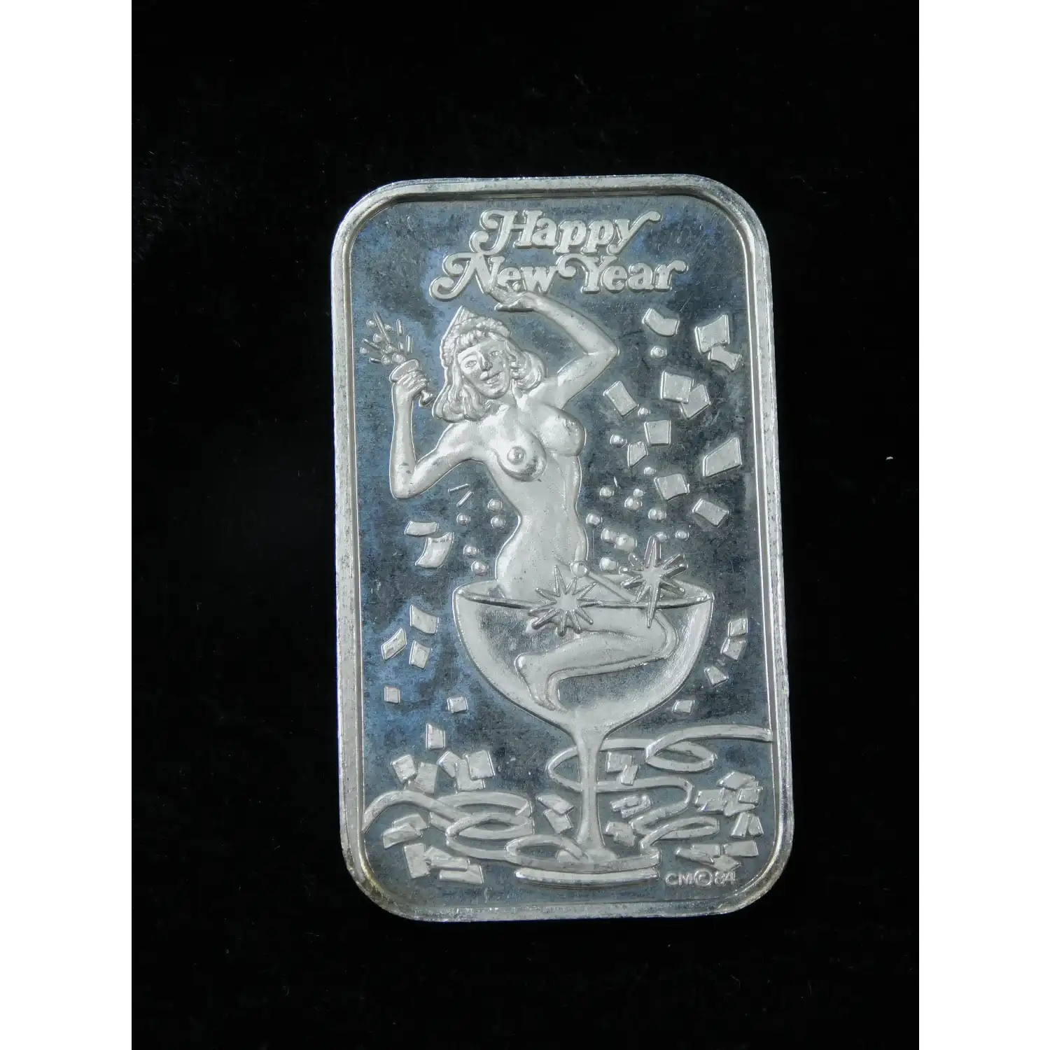 Crown Mint Holiday Beauties 1 oz .999 Fine Silver Art Bar - Happy New Year