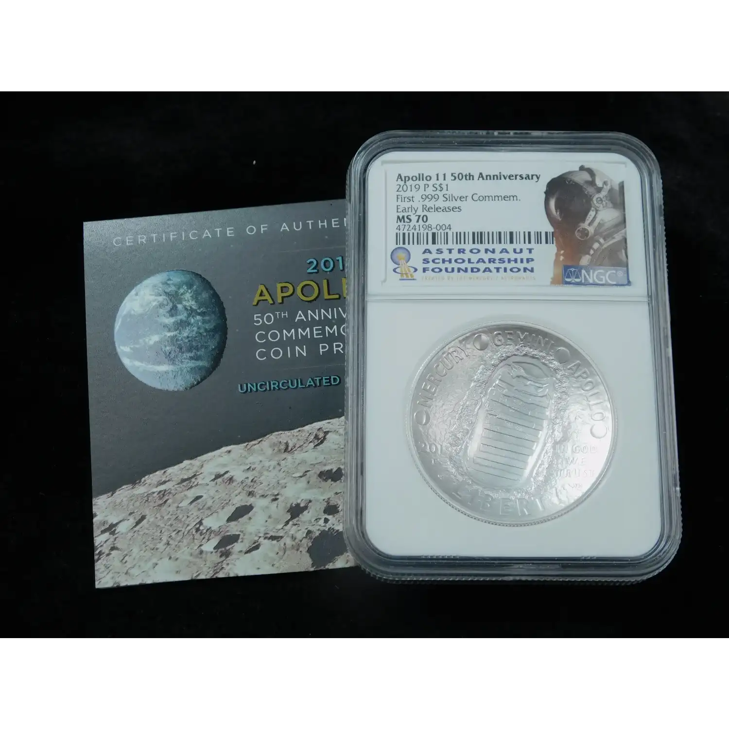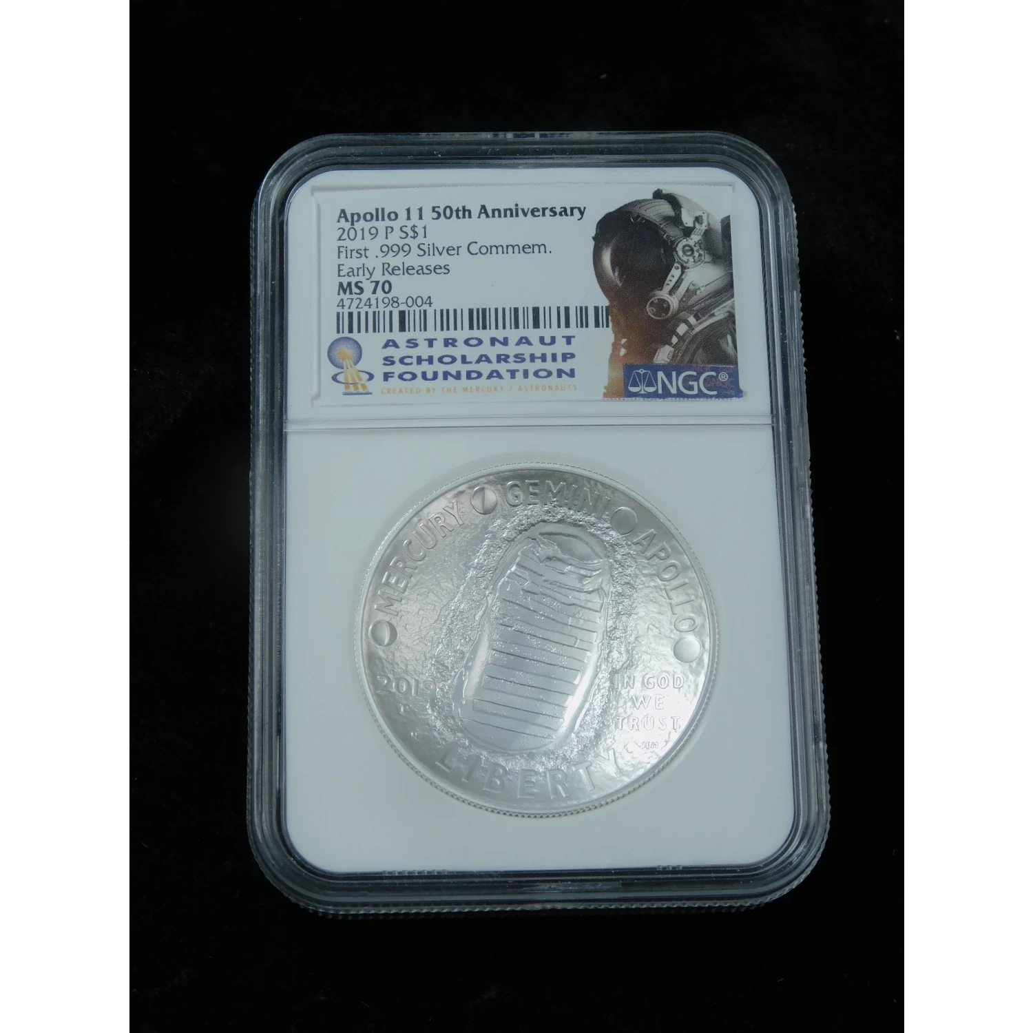 2019 $1 Apollo 11 50th Anniversary .999 Fine Silver - NGC MS70 w/ Box & COA
