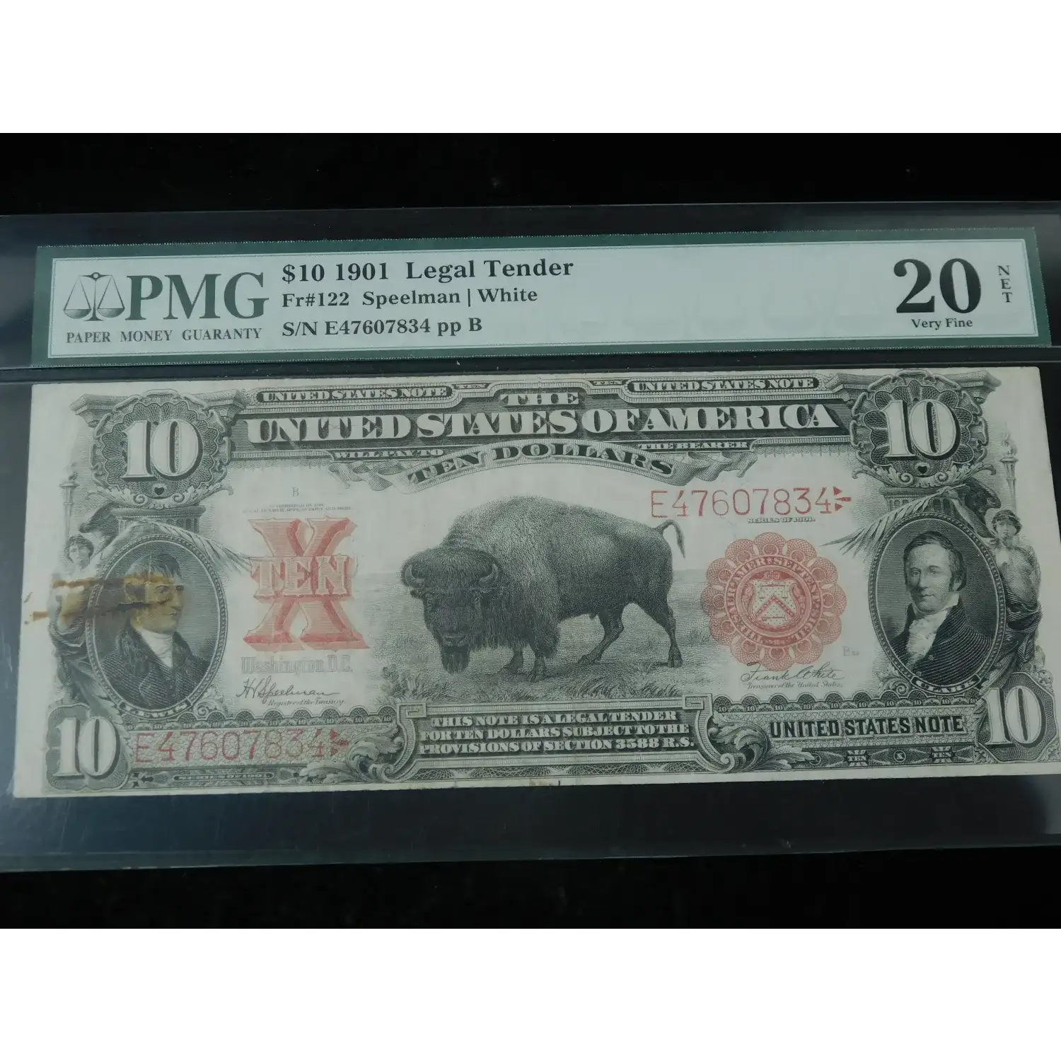 1901 $10 United States Bison Legal Tender Note - PMG 20 Net Rust