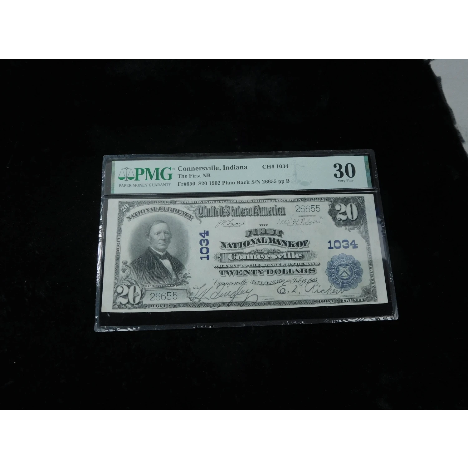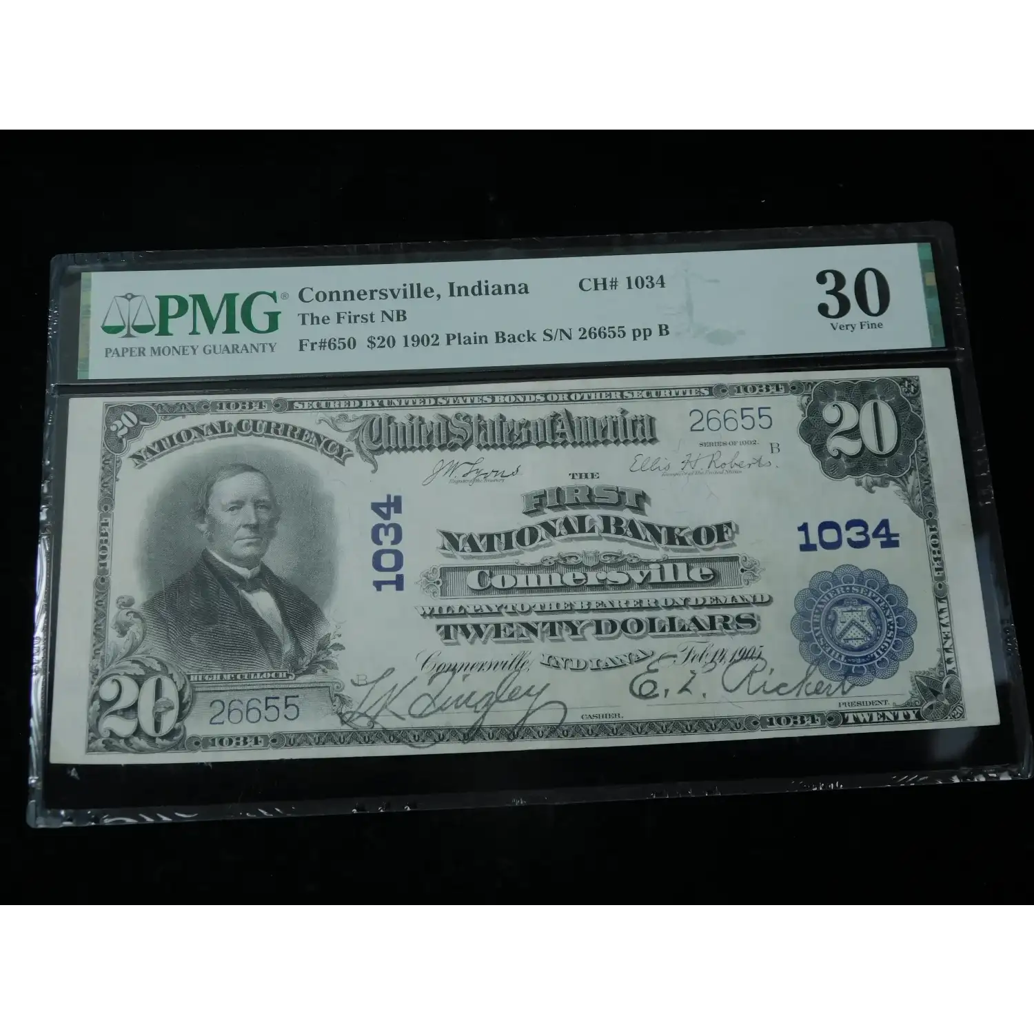 1902 $20 1st National Bank of Connersville Indiana CH # 1034 - PMG 30
