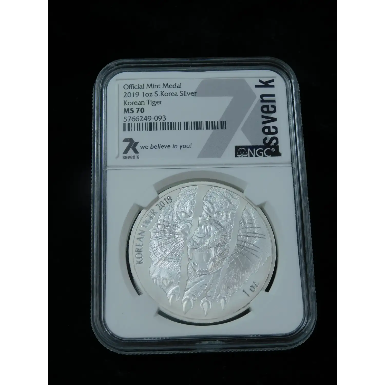 2019 South Korea Korean Tiger 1 oz .999 Silver Coin - NGC MS70 7K