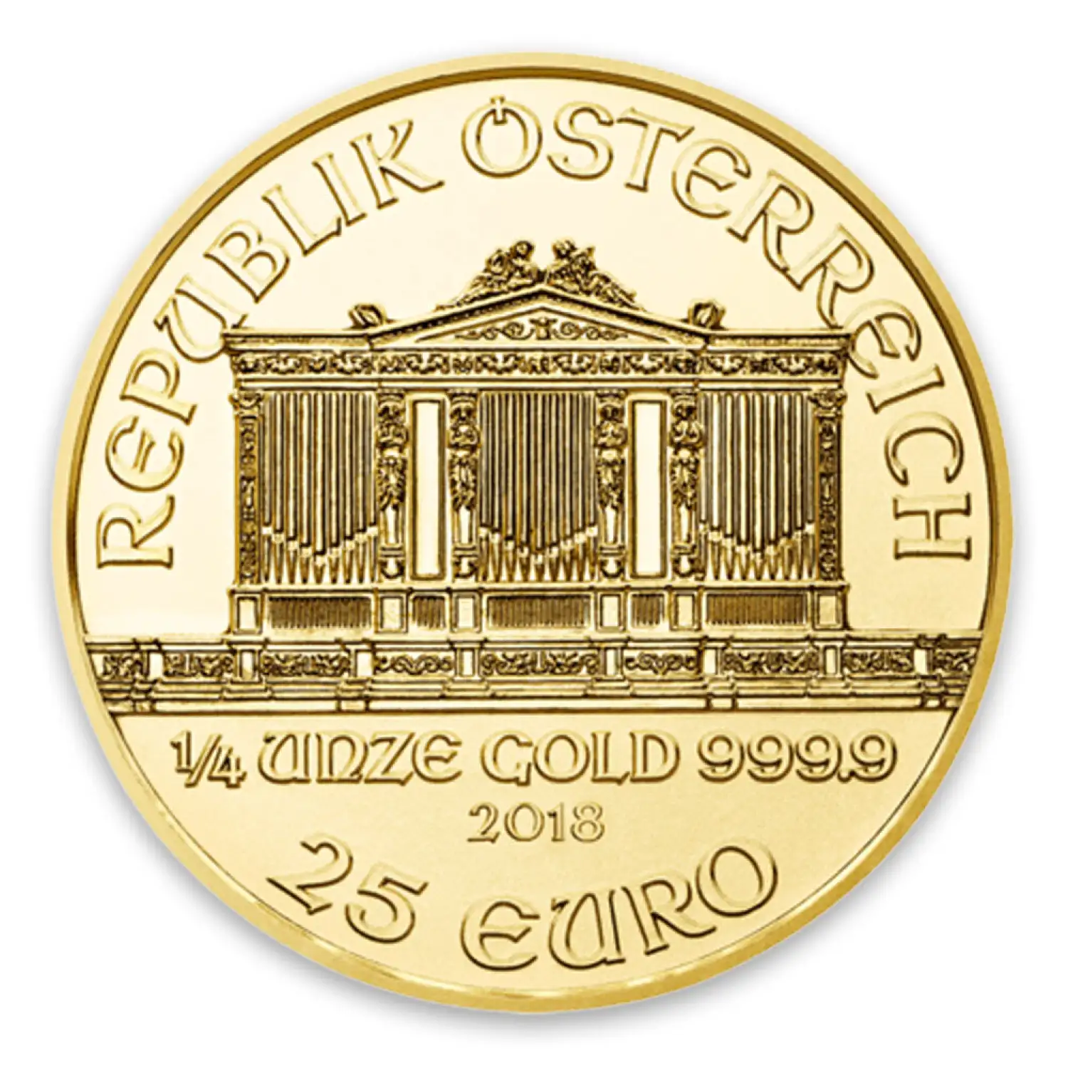 First released in 1989 by the Australian Mint, the 1/4 oz Austrian Gold Philharmonic coin is the third largest piece in the Philharmonic coin series.